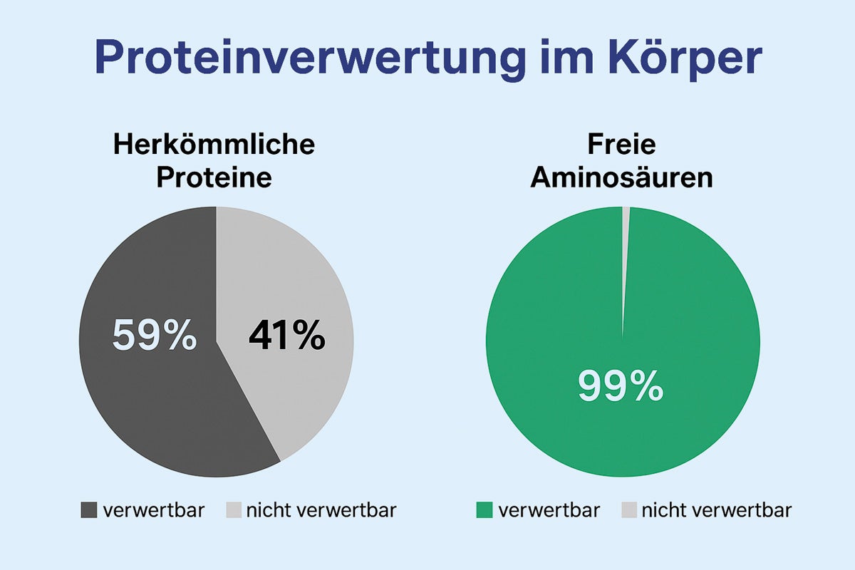 Das Bittere daran: Am Ende erreicht trotz aller Bemühungen nur ein Bruchteil der Aminosäuren überhaupt Deine Muskeln, Deine Haut oder Dein Immunsystem.