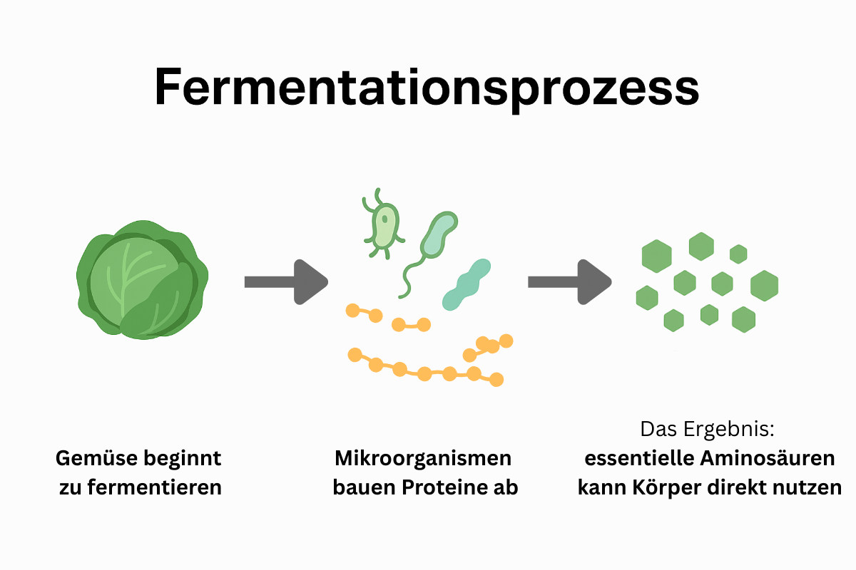 Und das aus einem ganz bestimmten Grund: Gemüse kann einem sogenannten Fermentationsprozess unterzogen werden, das bedeutet, dass Mikroorganismen bestimmte komplexe Stoffe, wie etwa Proteine, abbauen, sodass sie vom Körper leichter aufgenommen werden können.